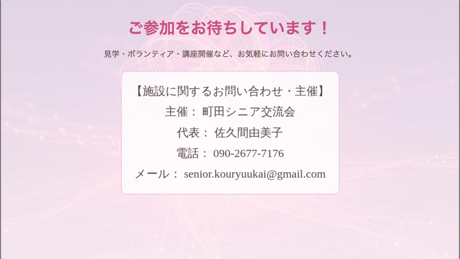 * 定期的な交流会・お茶会:新しい仲間と出会い、情報交換。